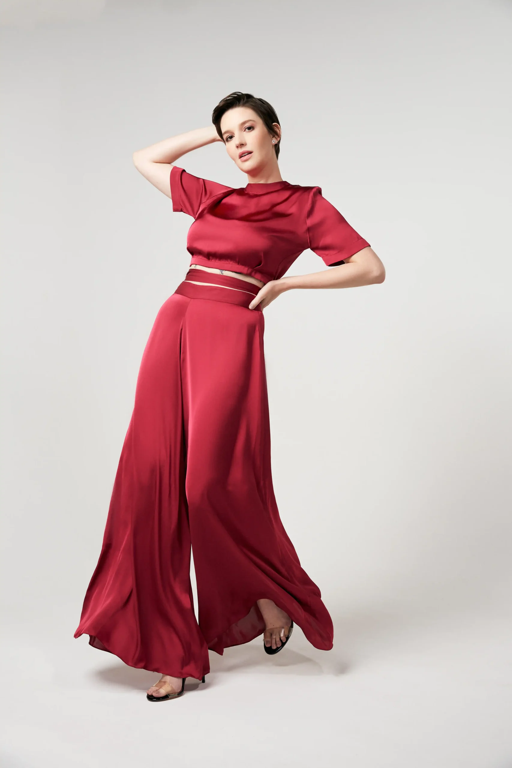CALÇA PANTALONA ACETINADA, SHAPE SOLTO E AMPLO